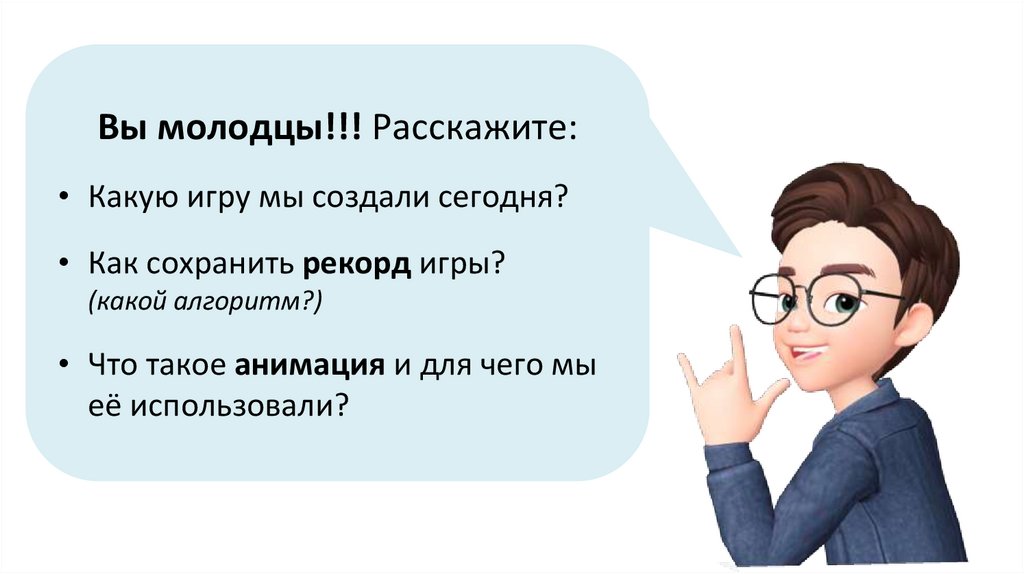 Вы молодцы!!! Расскажите:• Какую игру мы создали сегодня?