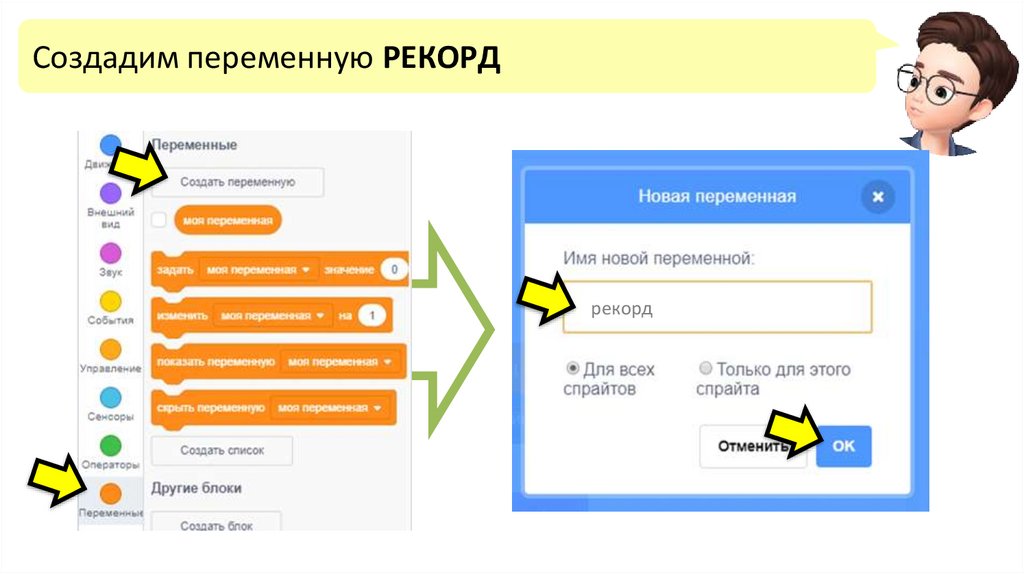Создадим переменную РЕКОРДрекорд