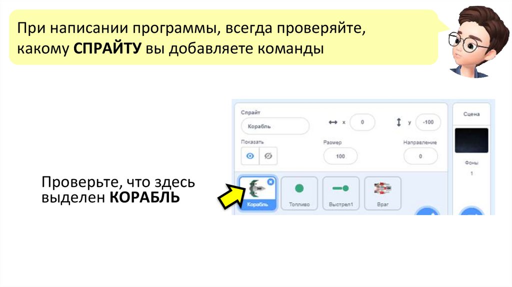 При написании программы, всегда проверяйте,какому СПРАЙТУ вы добавляете команды