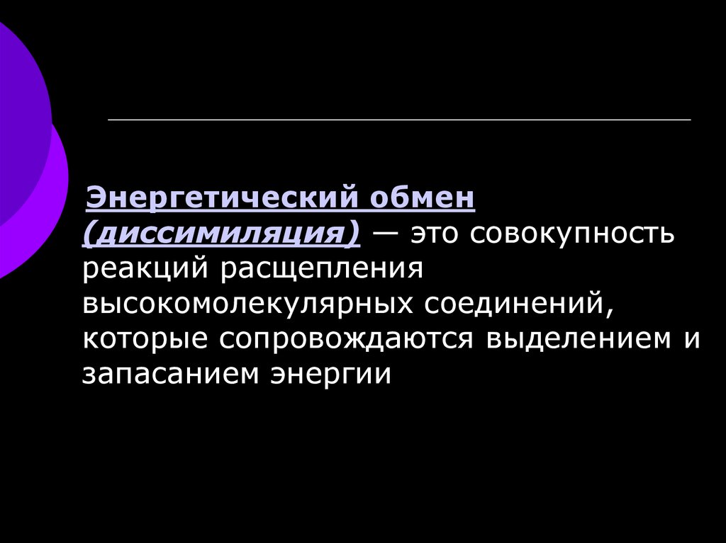 Энергетический обмен(диссимиляция) — это совокупность