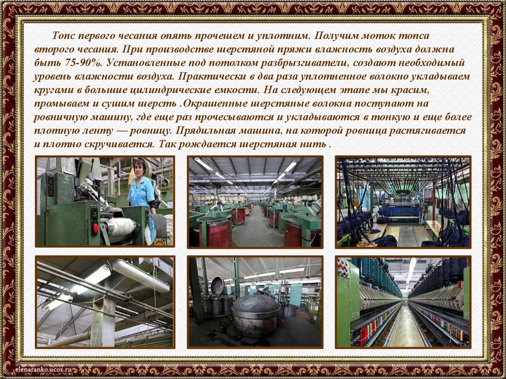 Топс первого чесания опять прочешем и уплотним. Получим моток топсавторого чесания. При производстве шерстяной пряжи влажность воздуха должна
