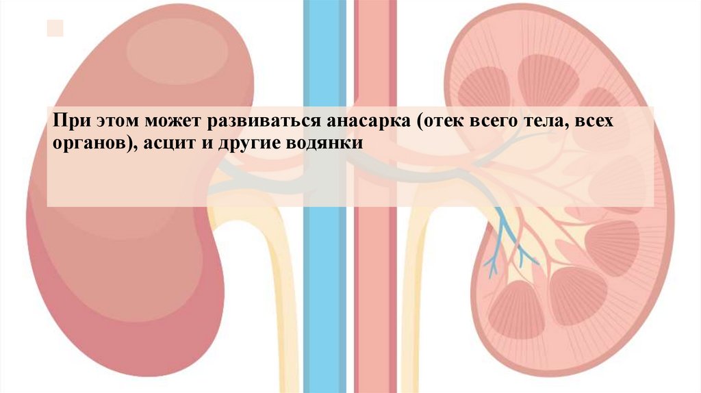 При этом может развиваться анасарка (отек всего тела, всехорганов), асцит и другие водянки
