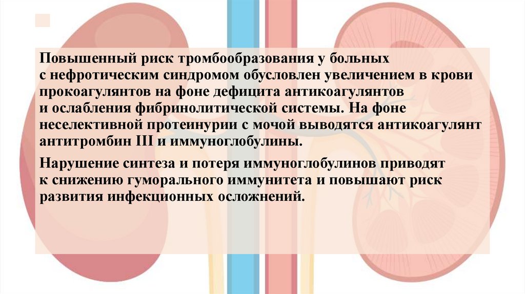 Повышенный риск тромбообразования у больныхс нефротическим синдромом обусловлен увеличением в крови