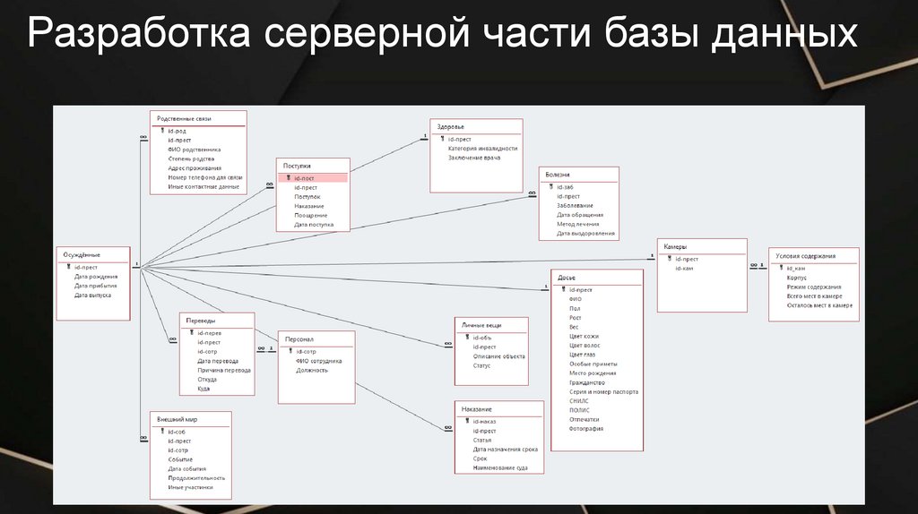 Разработка приложения базы данныхКлючевой и обязательной для заполнения является форма «Осуждённые», через неё происходит связь