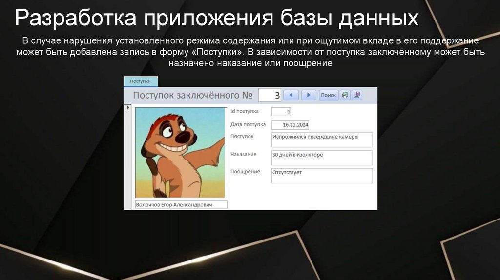 Разработка приложения базы данныхВ случае нарушения установленного режима содержания или при ощутимом вкладе в его поддержание