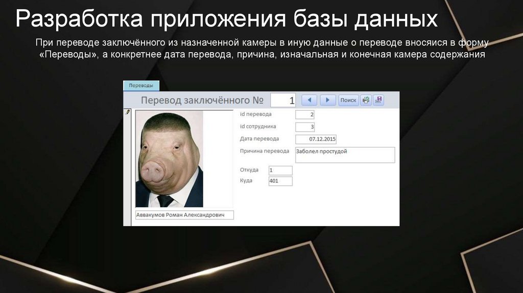 Разработка приложения базы данныхПри переводе заключённого из назначенной камеры в иную данные о переводе вносяися в форму