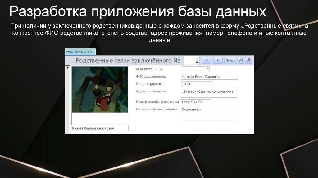 Разработка приложения базы данныхПри наличии у заключённого родственников данные о каждом заносится в форму «Родственные связи», а