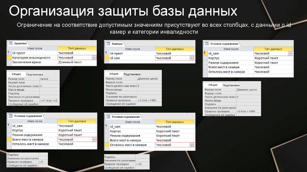 Организация защиты базы данныхОграничение на соответствие допустимым значениям присутствуют во всех столбцах, с данными о id