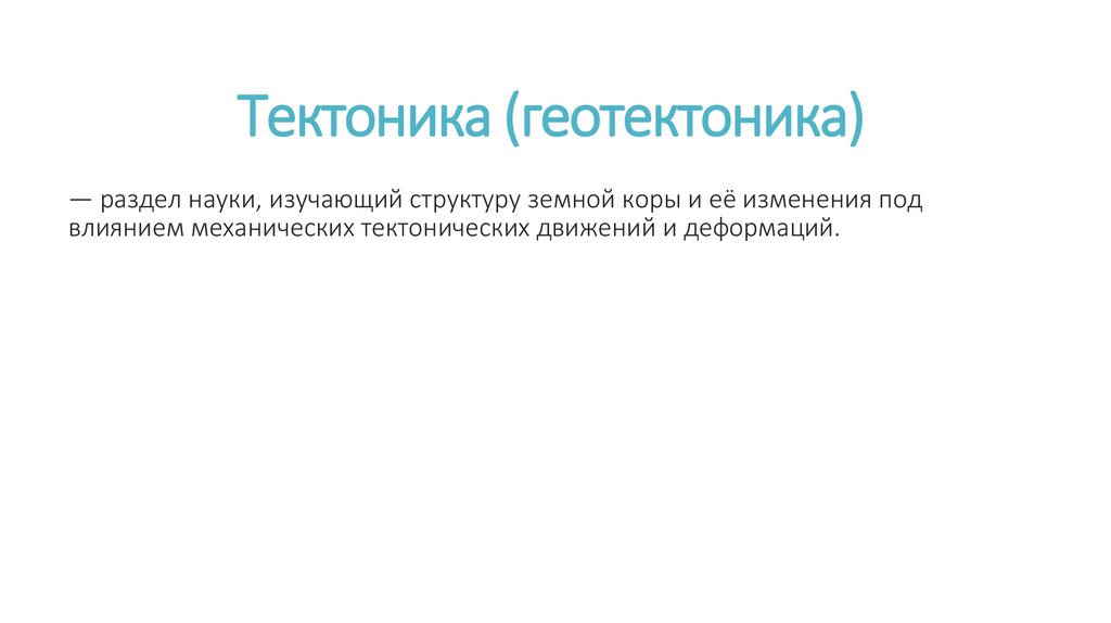 — раздел науки, изучающий структуру земной коры и её изменения подвлиянием механических тектонических движений и деформаций.
