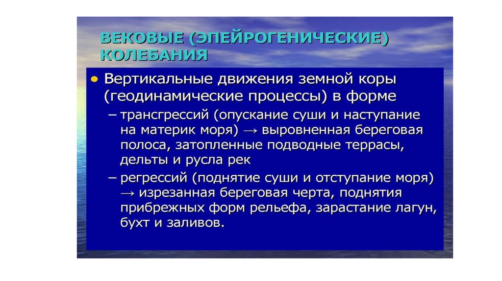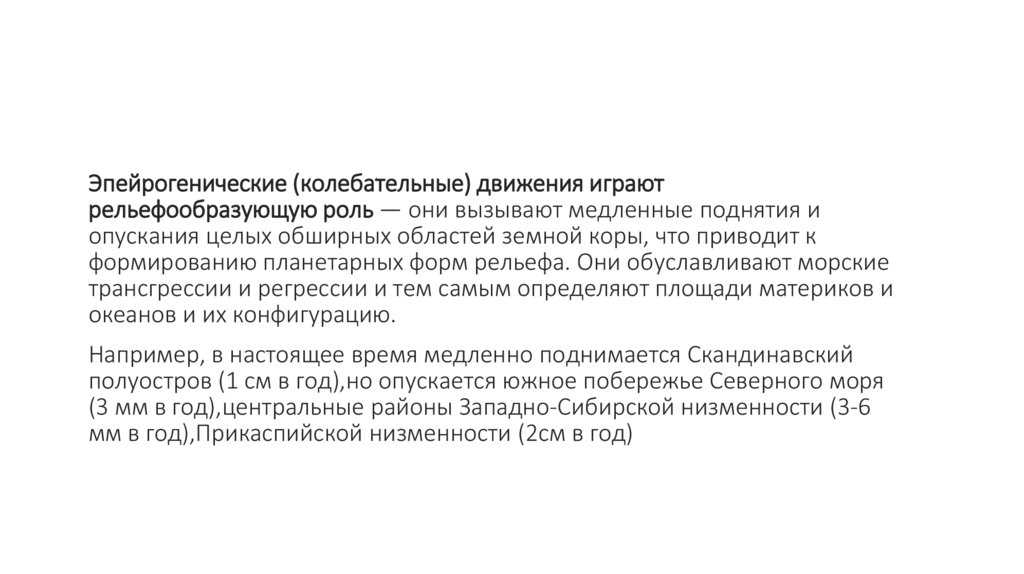 Эпейрогенические (колебательные) движения играютрельефообразующую роль — они вызывают медленные поднятия и