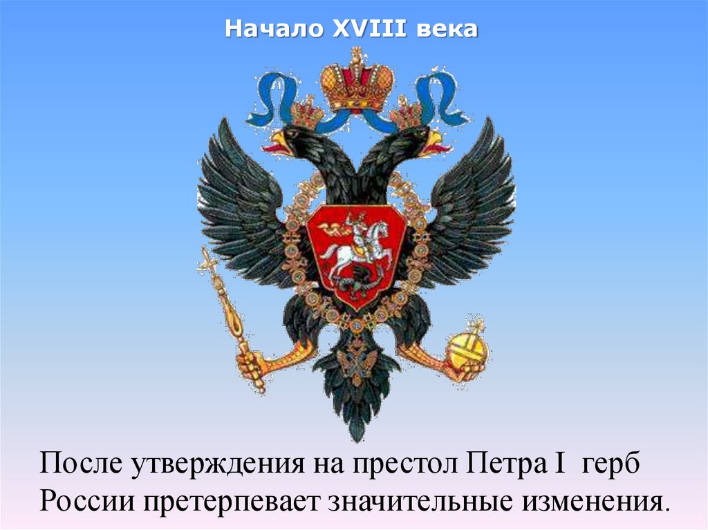 Начало XVIII векаПосле утверждения на престол Петра I герб