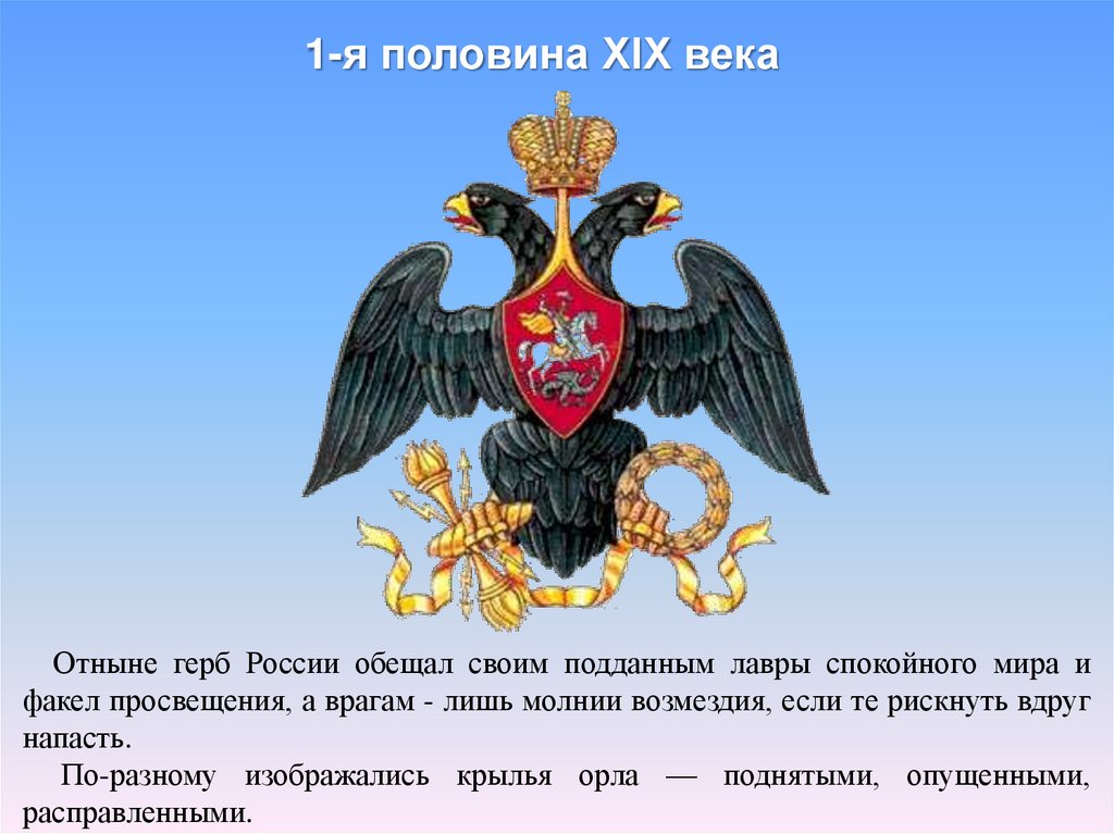 1-я половина XIX векаОтныне герб России обещал своим подданным лавры спокойного мира и