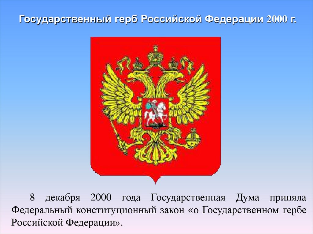 Государственный герб Российской Федерации 2000 г.8 декабря 2000 года Государственная Дума приняла