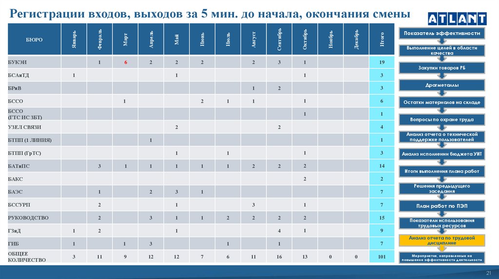 Регистрации входов, выходов за 5 мин. до начала, окончания смены