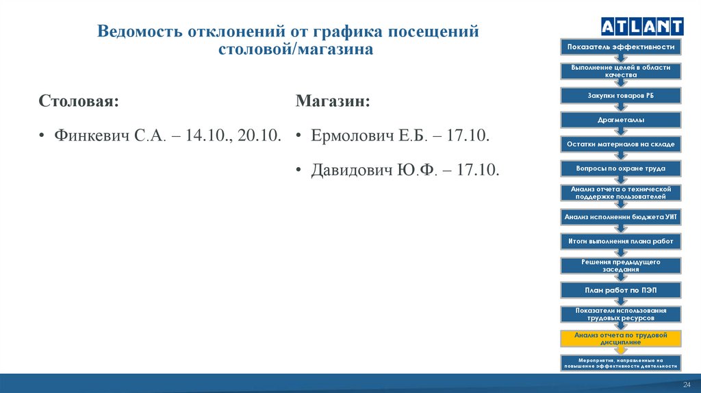 Ведомость отклонений от графика посещенийстоловой/магазина