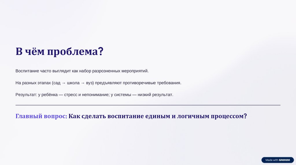 В чём проблема?Воспитание часто выглядит как набор разрозненных мероприятий.