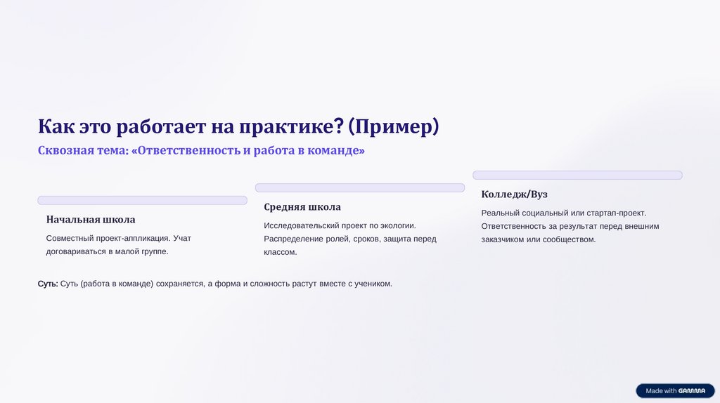 Как это работает на практике? (Пример)Сквозная тема: «Ответственность и работа в команде»