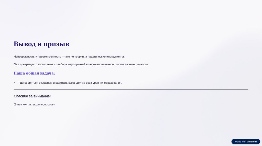 Вывод и призывНепрерывность и преемственность — это не теория, а практические инструменты.