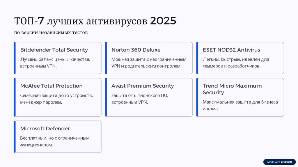 • Bitdefender, Norton, ESET и McAfee — признанные лидеры по