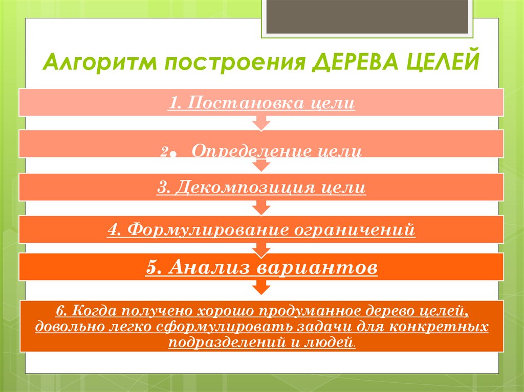 Алгоритм построения ДЕРЕВА ЦЕЛЕЙ1. Постановка цели