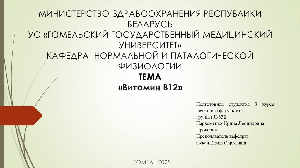 1. МИНИСТЕРСТВО ЗДРАВООХРАНЕНИЯ РЕСПУБЛИКИ БЕЛАРУСЬ УО «ГОМЕЛЬСКИЙ ГОСУДАРСТВЕННЫЙ МЕДИЦИНСКИЙ УНИВЕРСИТЕТ» КАФЕДРА НОРМАЛЬНОЙ И