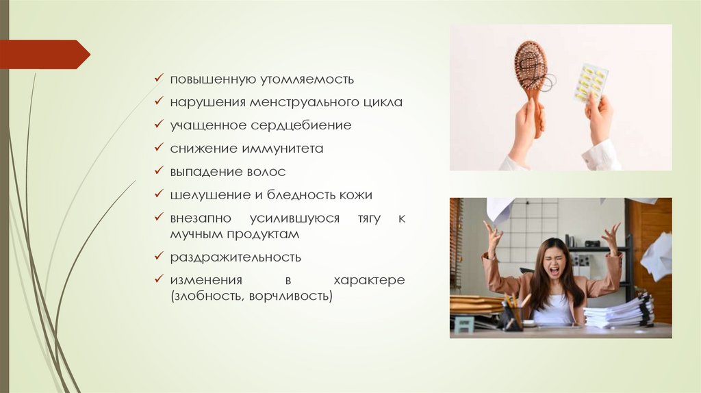 повышенную утомляемостьнарушения менструального цикла