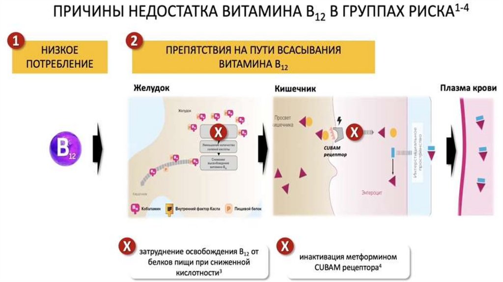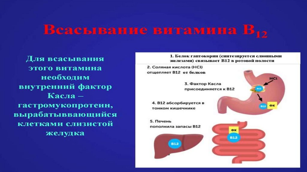 заболевания ЖКТ снижают усвоение B12.