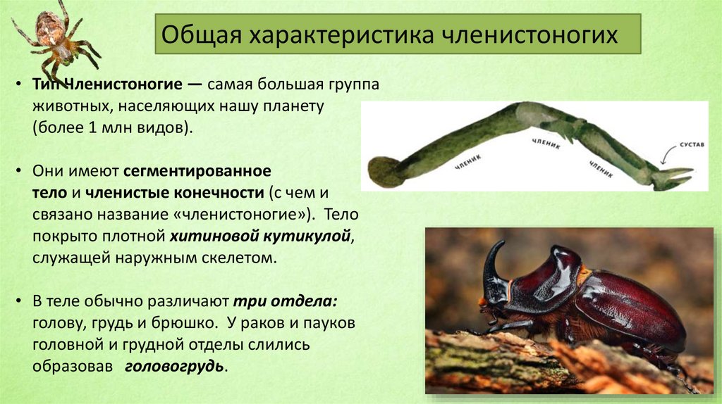 Общая характеристика членистоногих• Тип Членистоногие — самая большая группа