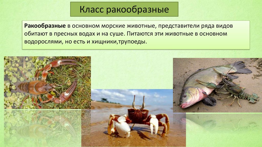 Класс ракообразныеРакообразные в основном морские животные, представители ряда видов