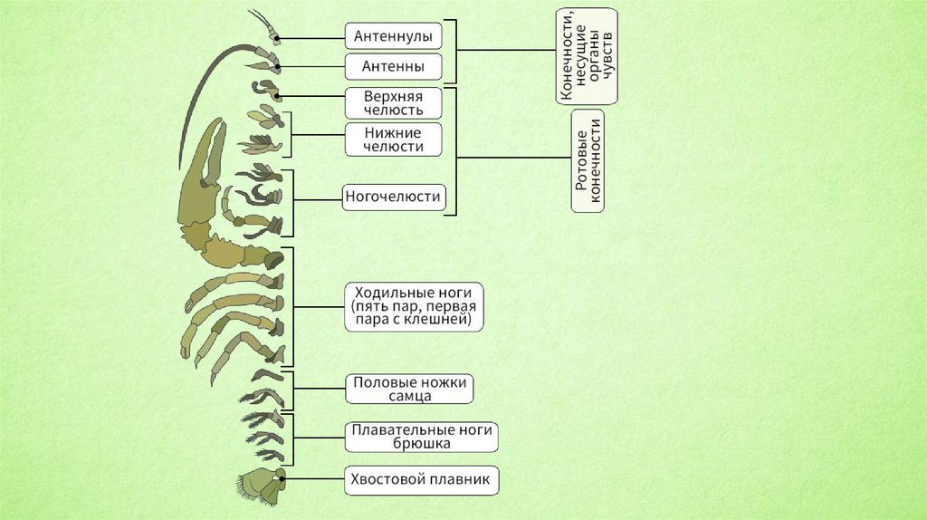 короткие (антеннулы) — органы обоняния и осязания. Органы