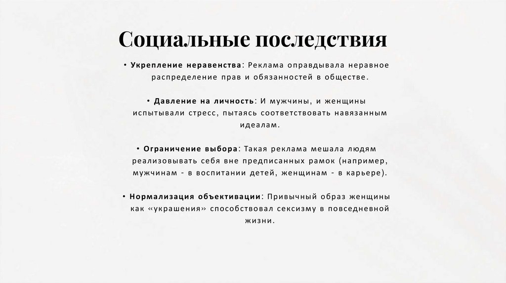Социальные последствия• Укре пле ние не раве нс тва : Ре клама оправд ывала не ра в ное
