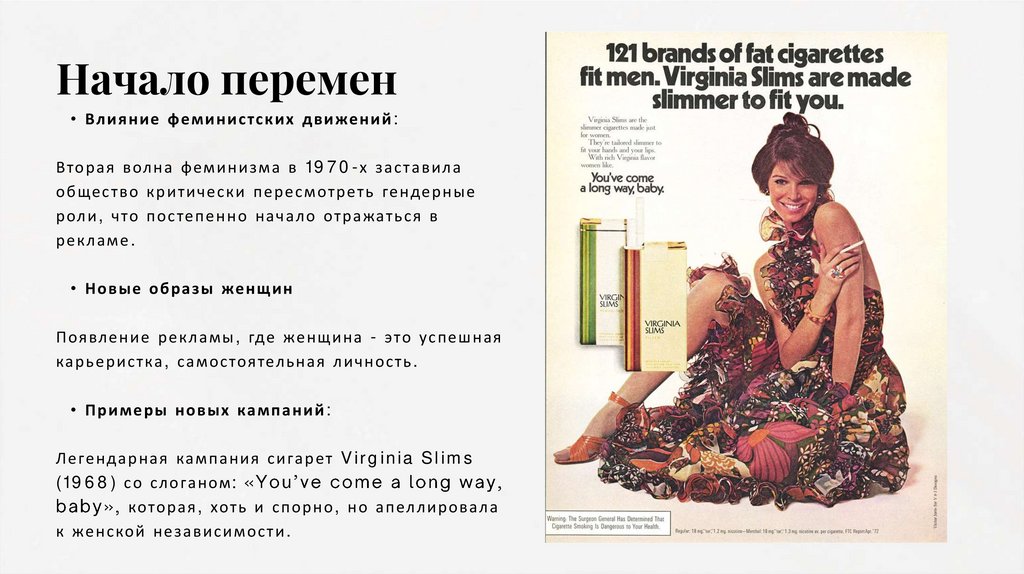 Начало перемен• Влия ние фем инис тс ких движе ний :