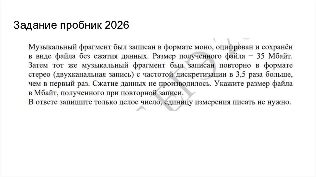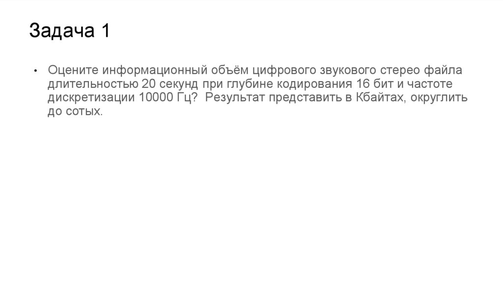 Задача 1Оцените информационный объём цифрового звукового стерео файла
