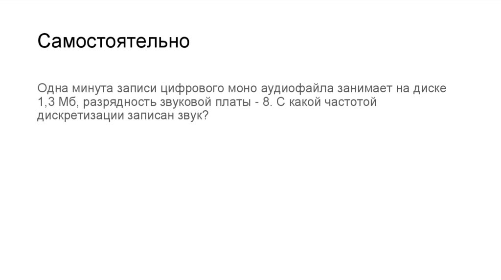 СамостоятельноОдна минута записи цифрового моно аудиофайла занимает на диске