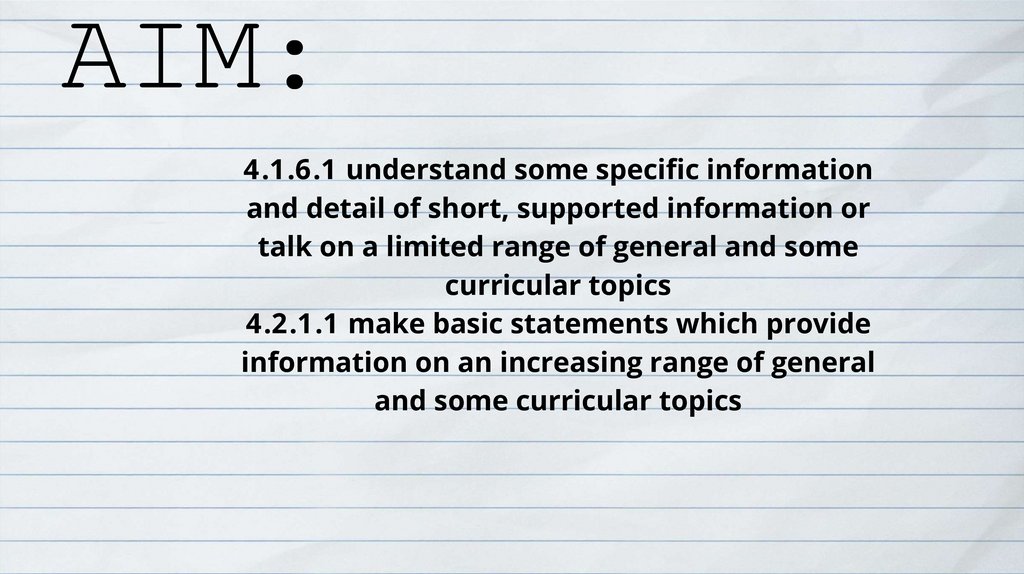 AIM:4.1.6.1 understand some specific information