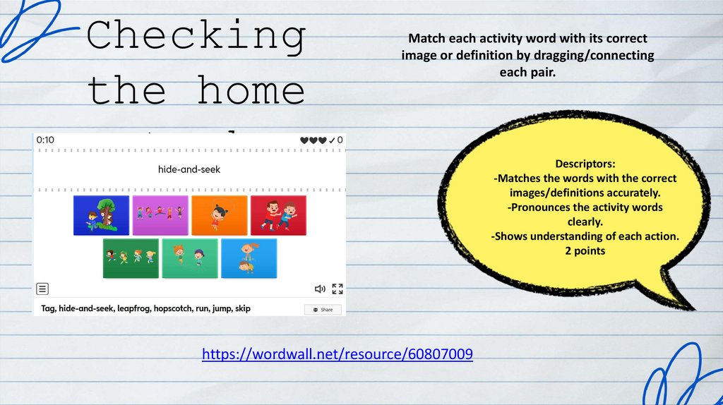-Pronounces the activity words