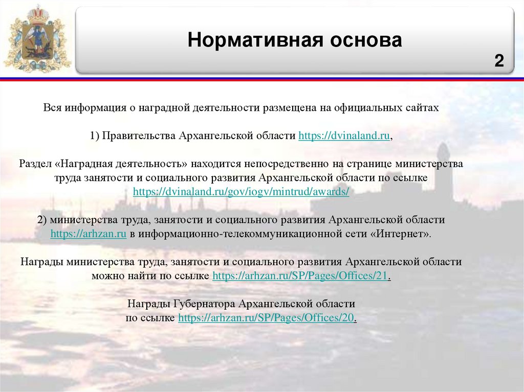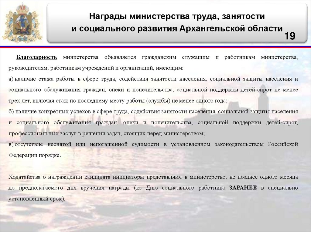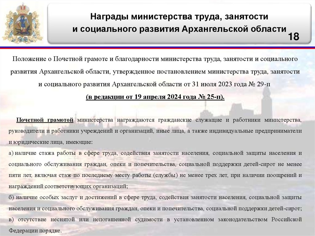1. Ведение наградной деятельности Министерство труда, занятости и социального развития Архангельской области Архангельск 2025