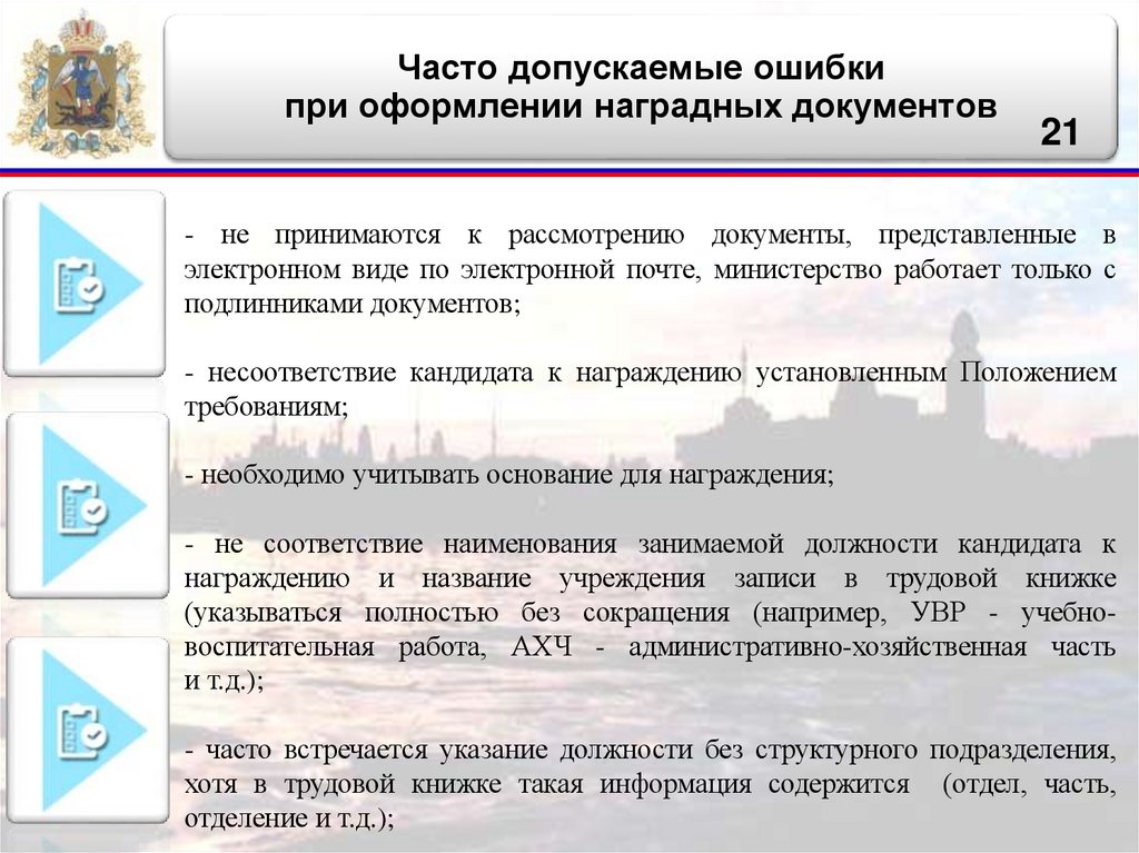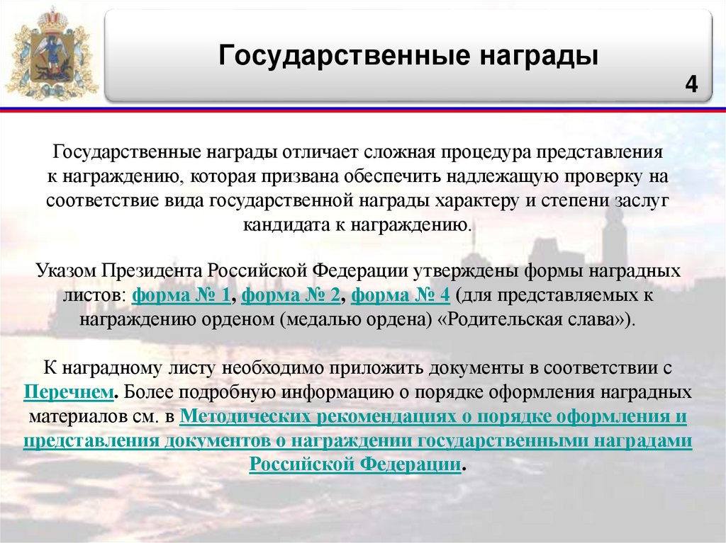 Перечнем. Более подробную информацию о порядке оформления наградных