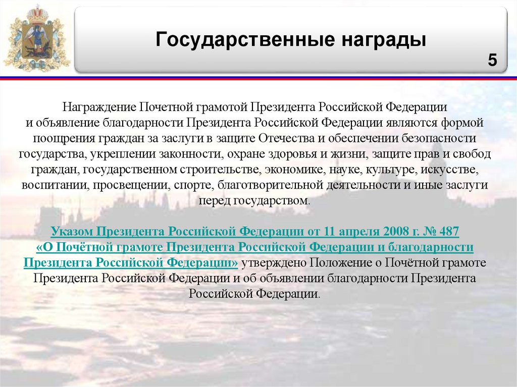 «О Почётной грамоте Президента Российской Федерации и благодарности