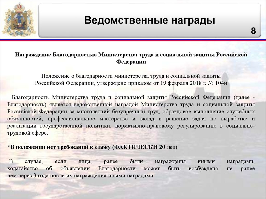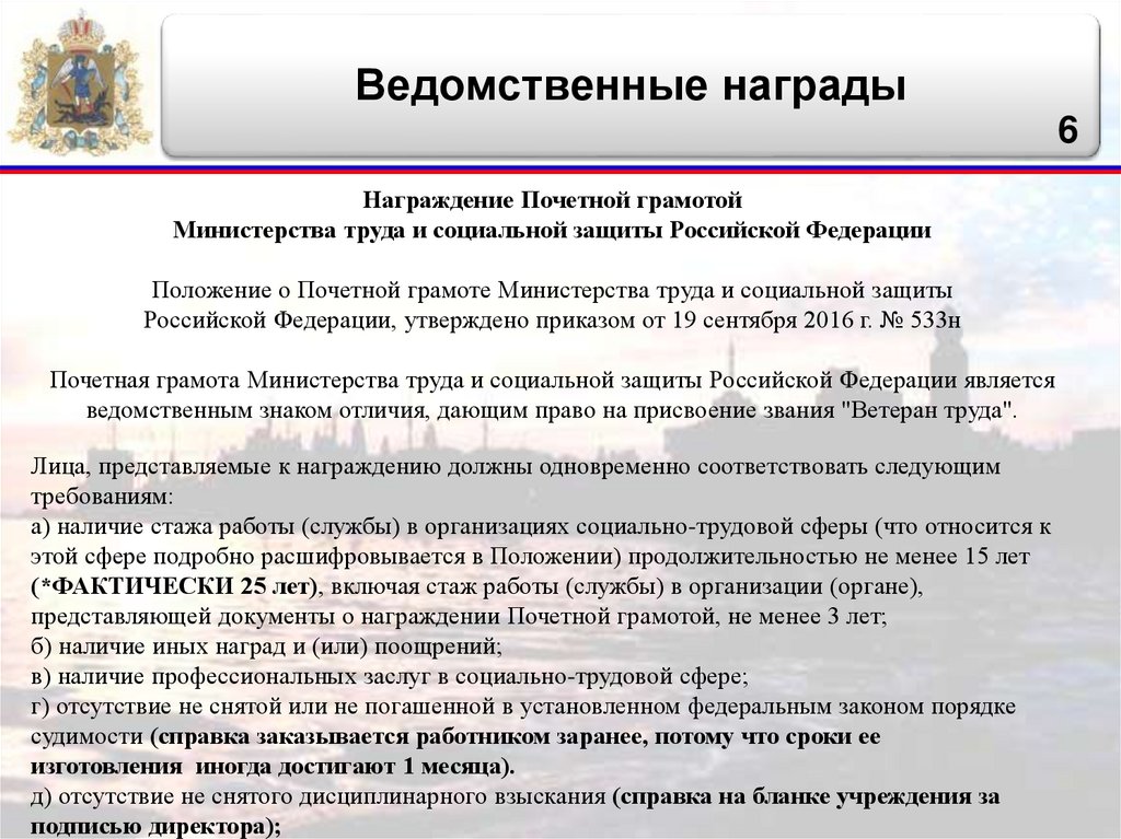 Положение о Почетной грамоте Министерства труда и социальной защиты