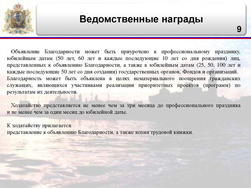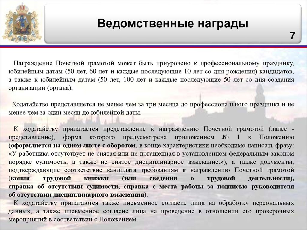 Ходатайство представляется не менее чем за три месяца до профессионального праздника и не