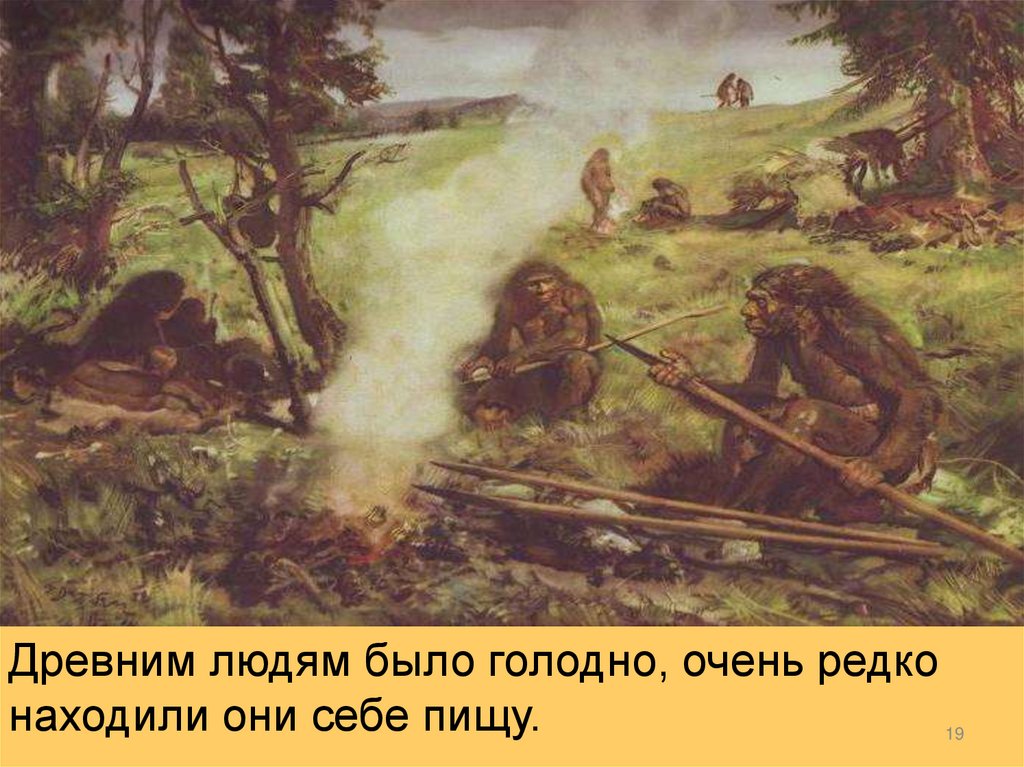 Древним людям было голодно, очень редконаходили они себе пищу.