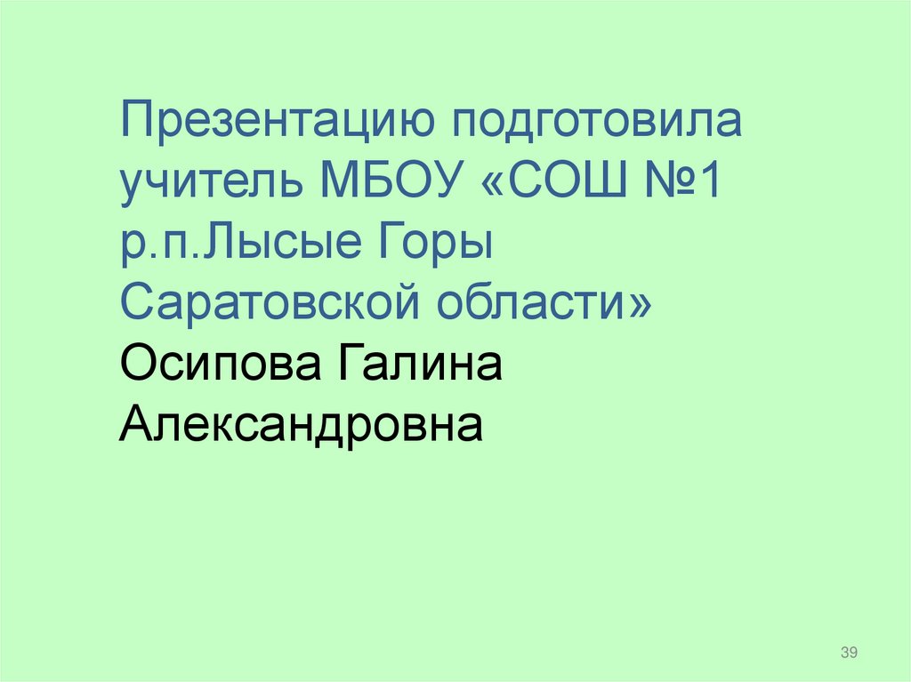 Презентацию подготовилаучитель МБОУ «СОШ №1