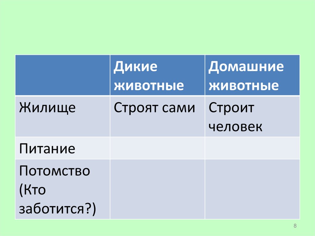 • Живут самостоятельно в природе: добываютсебе пищу, строят себе жилища, ухаживают за