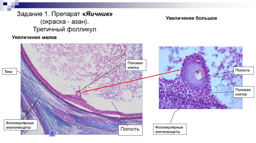 Задание 1. Препарат «Яичник»(окраска - азан).
