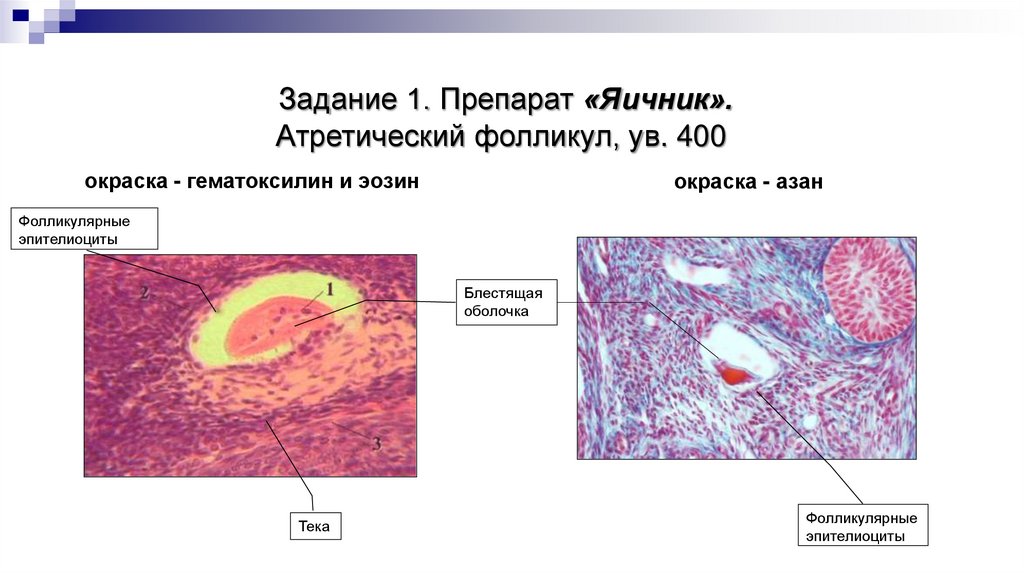 Задание 1. Препарат «Яичник».Атретический фолликул, ув. 400