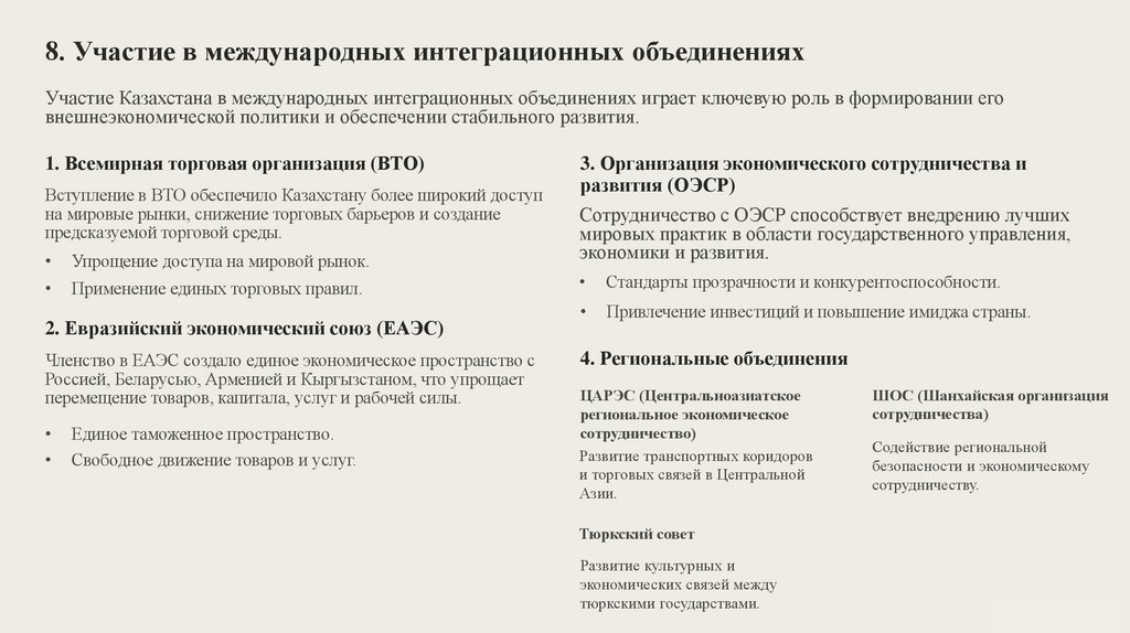 мировую экономику, участвует в работе Всемирной торговой организации (ВТО), является частью Евразийского