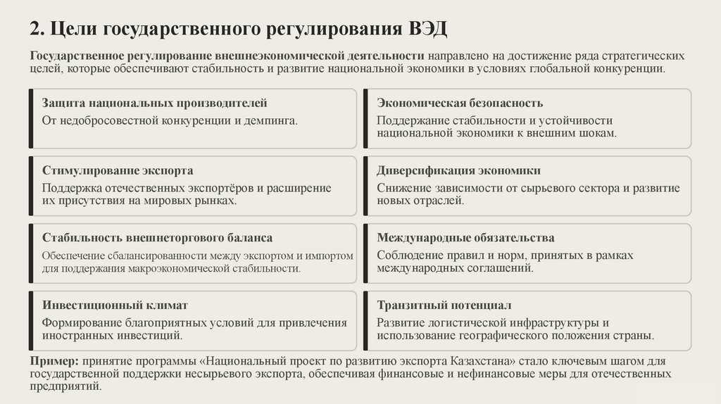 2. Цели государственного регулирования ВЭДГосударственное регулирование внешнеэкономической деятельности направлено на достижение ряда стратегических