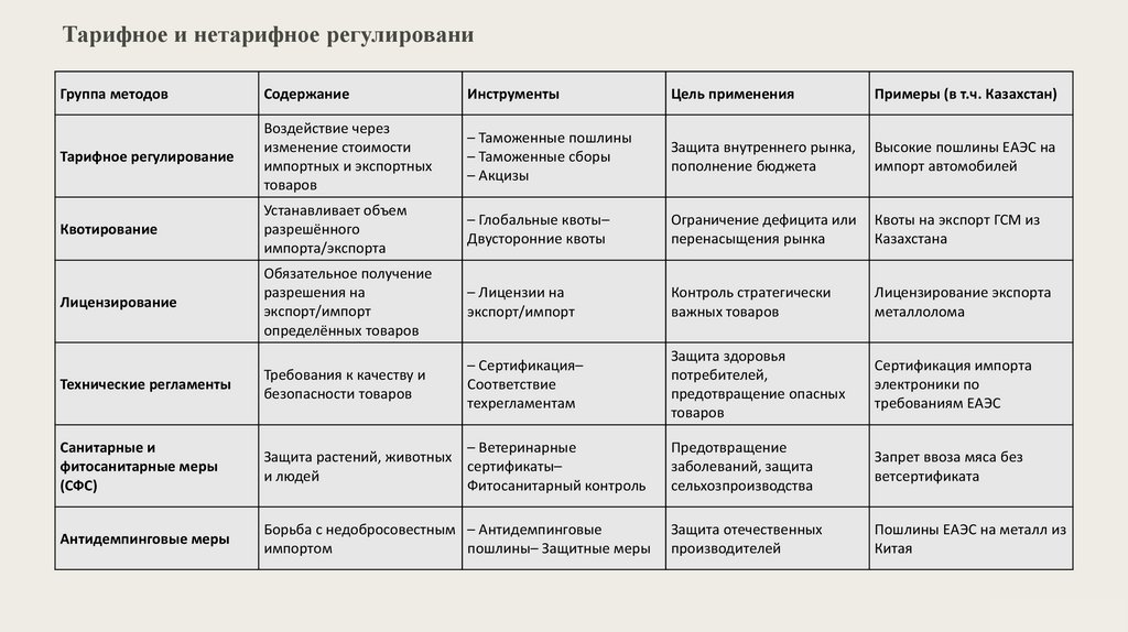 2. Нетарифное регулирование — это система административных, технических и количественных ограничений, которые контролируют объём,