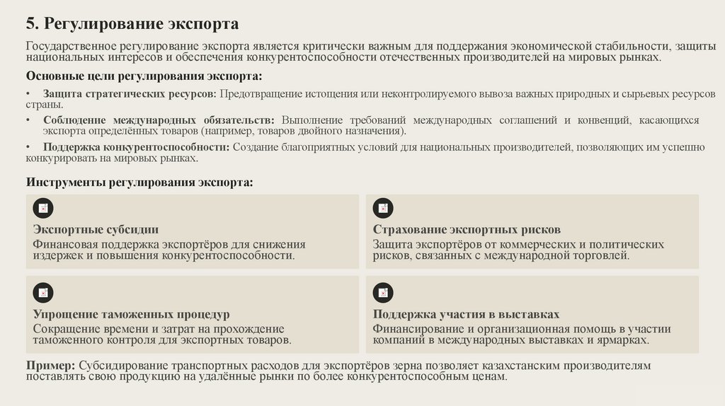 Пример: принятие программы «Национальный проект по развитию экспорта Казахстана» стало ключевым шагом для